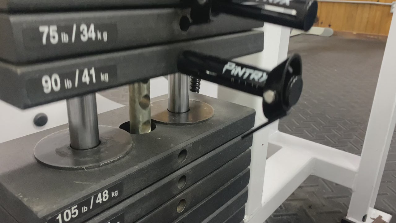 Simple! Insert the first pin into the weight stack at the load you want to start with, just like a normal selector pin, and the second at your second desired load. When you finish your reps for the first selection, let the weight stack come down; the impact automatically ejects the pin, instantly shifting the stack to the second load you pre-selected. You don’t have to touch or adjust anything between sets; Pintryx does the work for you, making drop sets faster, cleaner, and way more efficient.